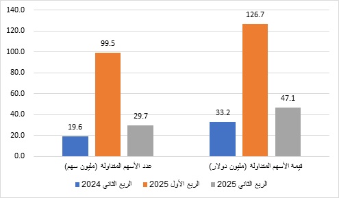قيمة الأسهم المتداولة (مليون دولار) | 33.2 | 126.7 | 47.1 |