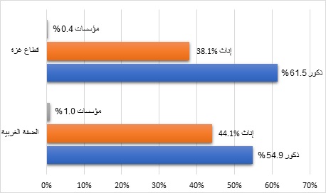 يوضح الشكل (3) أدناه توزيع المساهمين في الشركات المدرجة في بورصة فلسطين في الضفة الغربية وقطاع غزة، والبالغ عددهم 61,221 مساهماً كما في نهاية الربع الثاني 2025، حوالي 84% منهم في الضفة الغربية، و16% في قطاع غزة..